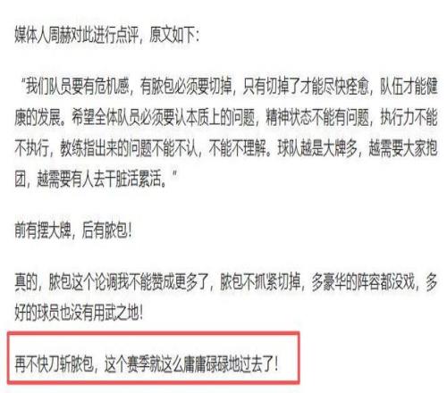還表示如果膿包不抓緊切掉,北京隊陣容再怎麽豪華也可能沒戲。
