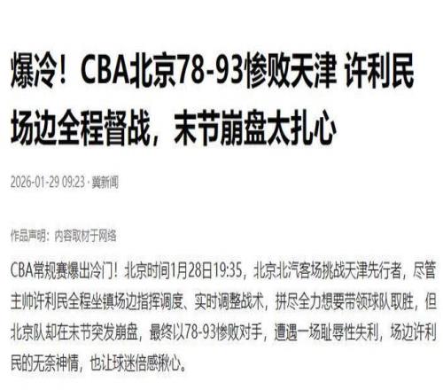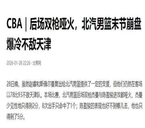1月28日的京津德比中,擁有豪華陣容的北京隊爆冷輸給了天津隊。