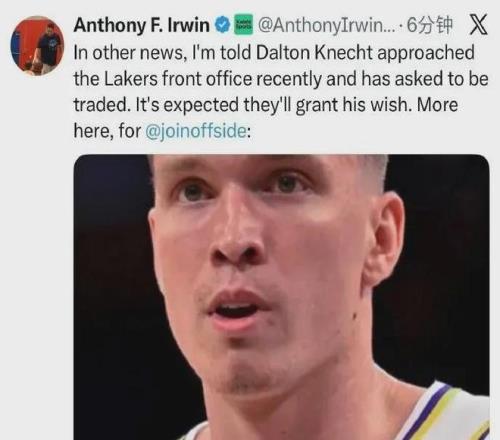 據美記報道,克內克特主動聯係湖人管理層申請交易,預計會得到同意......