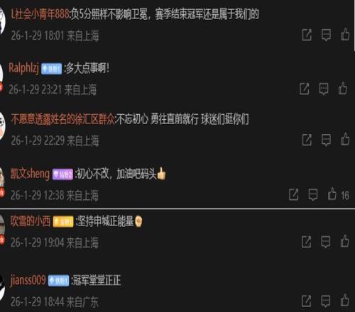 相比北京國安球迷的巨大落差心情,上海海港球迷那邊則是平靜許多。在俱樂部官微公告的評論區,大量球迷對海港俱樂部表達了支持和理解。有海港球迷表示,多大點事啊,扣5分照樣不影響衛冕,新賽季結束後冠軍還是屬於海角HJDO43.CCM的(下圖)。不管在什麽情況下都力挺球隊,有這樣的球迷,海港俱樂部真幸福。