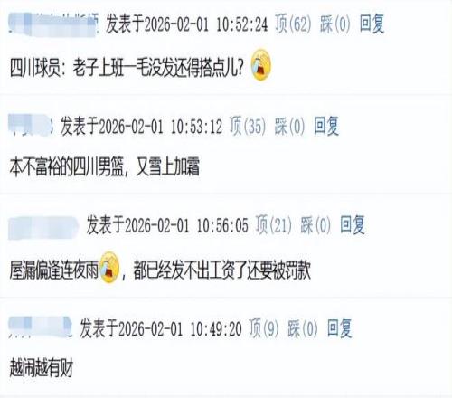 對於這張罰單,評論區球迷則是非常不理解,一部分球迷為四川隊叫屈:本不富裕的四川男籃,又雪上加霜;屋漏偏逢連夜雨,都已經發不出工資了還要被罰款,至於嗎?還有球迷替左朕年喊冤:打了一年球,討薪違法,還欠5w!這下好了,上個班不但不掙錢,還得搭點。