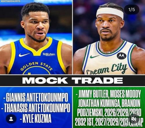具體交易內容為:勇士得到字母哥+字母哥哥+凱爾庫茲馬,雄鹿則得到吉米巴特勒+摩西穆迪+喬納森庫明加+布蘭丁波傑姆斯基+2026年、2028、2030、2032首輪簽+2027、2029、2031首輪互換權。