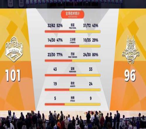 帶著11分的落後,進入到了第四節單外援模式,按說,山東隊還是有機會的,可惜的是,外援準星不夠,高詩岩也沒打開,使得天津隊基本上維持著兩位數的優勢。盡管山東隊一度追到隻差4分,但終究未能逆轉,最終客場爆冷,以96-101輸給了天津隊,未能為第一階段畫上完美的句號。