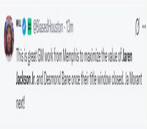 休媒發來讚譽:這是來自孟菲斯灰熊的一次出色運作,他們最大的限度的發揮了貝恩、小賈倫兩人的交易價值,接下來肯定是莫蘭特了。