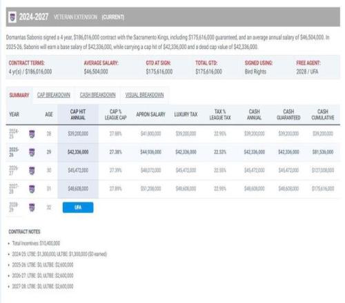 國王隊則正處於一個可能的十字路口,本賽季他們戰績僅為12勝36負,麵臨重建壓力,交易隊內的核心資產以換取年輕球員和選秀權,成為一個現實選項,薩博尼斯剩餘的合同價值不菲,未來兩個賽季薪水合計超過9400萬美元。