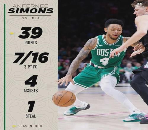 本賽季至今,西蒙斯出戰49場比賽全部替補,場均上陣24.5分鍾得到14.2分2.4板2.4助,場均以39.5%命中率扔進2.7記三分球,最佳第六人有力競爭者,可惜為合同年薪資2768萬美元,成了被凱爾特人放棄的原因之一。