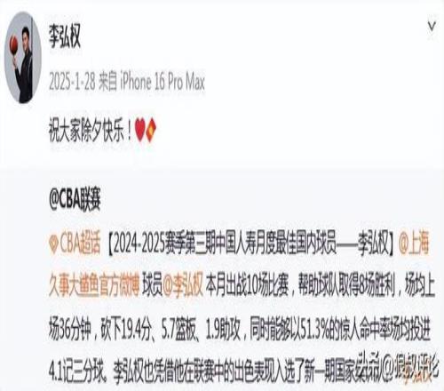 今年的第一階段結束後,又是春節期間獲得中國男籃征召,這一次李弘權能進入最終的12人名單嗎?