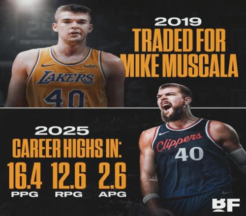 祖巴茨出生於1997年3月18日,2016年第32順位被湖人選中。10年NBA生涯,他一直在洛杉磯打球。2019年2月,湖人把祖巴茨和邁克爾-比斯利送到快船,2換1交易得到穆斯卡拉。結果穆斯卡拉在湖人隻打了17場比賽就離隊了!