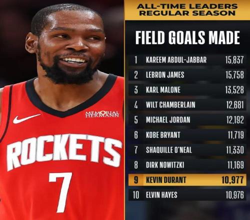 杜蘭特生涯總進球數超越埃爾文-海耶斯,升至曆史第9位迎來裏程碑。