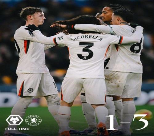 切爾西客場3-1擊敗墊底的狼隊後,藍軍豪取聯賽四連勝,在積分榜上進一步縮小與前四的差距,隻比第四的曼聯少1分。狼隊繼續深陷降級泥潭,保級形勢愈發嚴峻。這場比賽的勝負懸念在上半場便基本揭曉,帕爾默的帽子戲法與若昂·佩德羅的兩次造點,成為藍軍客場奏凱的最大功臣,下半場狼隊雖扳回一球,但難以逆轉敗局,切爾西用一場勝利延續了新帥羅塞尼爾上任後的良好勢頭。