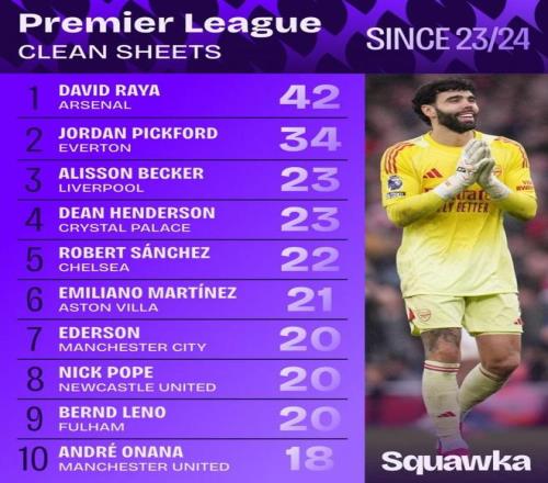 除了幾個破門實力出色的人物,在防守端加布裏埃爾與薩利巴的中衛組合固若金湯,幫助球隊延續了主場聯賽不丟球的紀錄。數據統計顯示,拉亞是近3個賽季零封次數最多的英超門將。