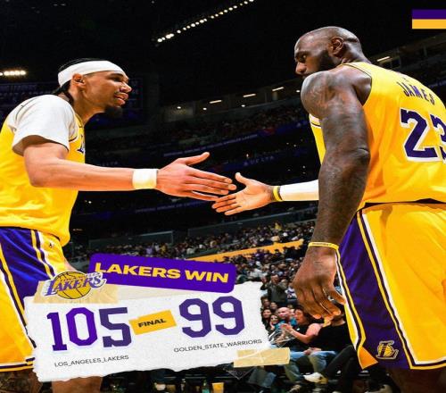NBA常規賽繼續進行,洛杉磯湖人隊(32勝19負)繼續連勝。勒布朗得到20分、7個籃板和10次助攻,裏夫斯替補得到16分、5個籃板和8次助攻,他們率隊依靠第三節高潮確立領先優勢,湖人隊在主場以105-99擊敗金州勇士隊(28勝25負)。湖人隊拿到3連勝。