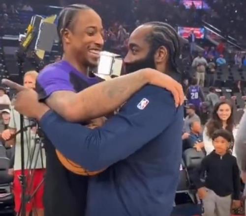 2021年,當哈登因腿筋傷勢掙紮於季後賽,德羅讚在采訪中力挺好友:“人們隻看到他的胡子和大合同,卻忽視了他為勝利付出的一切。”