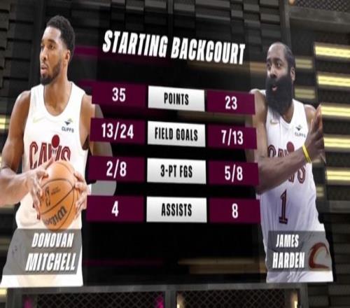 在本場比賽之後,轉播方曬米切爾+哈登合體首戰數據:兩人合砍58分12助攻。