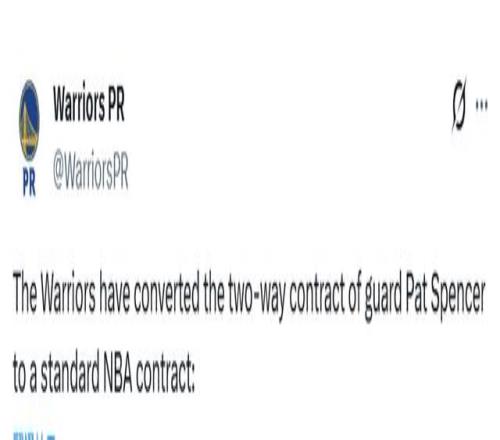 北京時間2月8日,勇士官方宣布已經將帕特-斯賓塞的雙向合同轉為正式NBA合同,此前Shams報道,合同期持續到本賽季結束。這位身高1米88的控球後衛,現在有資格出戰本賽季剩餘常規賽,同時也具備季後賽參賽資格——這是他此前雙向合同所不具備的。另外,勇士有興趣簽下此前被爵士裁掉的朗佐-鮑爾(球哥)。
