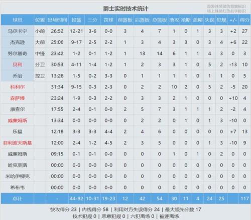 再來看看四節比分(爵士在前):30-33、35-21、29-33、23-33。大家可能發現一個問題,爵士第四節崩盤了,而且兩個核心馬爾卡寧和3J出場都不到27分鍾。沒錯,第三節還剩3分24秒,馬爾卡寧被換下,當時爵士尚且領先7分。