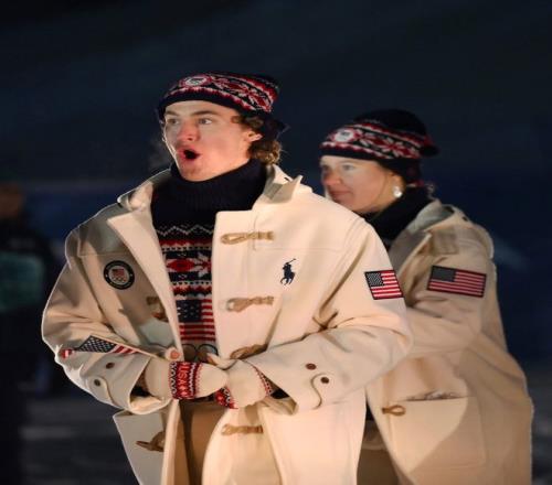 而且美國隊的這套“學院風大衣”最近火的嘞,一躍成了精英階層的社交貨幣,Ralph Lauren的官網在代表團入場後的 15 分鍾內,訪問量激增400%。