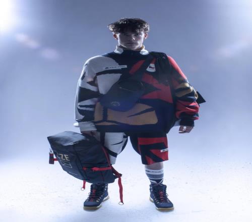還有內襯暗藏《千裏江山圖》山形輪廓,領口袖口綴有青花瓷紋理、回紋等,滿滿的東方美學,更是被意大利《Vogue》評價其“用幾何紋樣取代龍圖騰,開辟運動時裝新語境”。