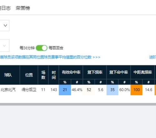 第一階段過後,鮑威爾場均三分能出手7.4次,三分頻率高居聯盟同位置第一,但他的三分命中率隻有28.4%,該數據僅超過聯盟同位置23%的球員,甚至不如隊友於德豪。