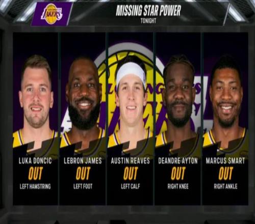 北京時間2月11日,NBA2025-26賽季常規賽迎來西部焦點之戰,洛杉磯湖人隊坐鎮主場,繼續迎戰聖安東尼奧馬刺隊。讓人擔心的是,背靠背的湖人隊迎來嚴重的傷病潮,球隊官方確認,五大核心詹姆斯、東契奇、裏夫斯等人全部缺席,昨天主場敗給聯盟第一的雷霆後,還麵臨背靠背作戰的嚴峻體能考驗,缺兵少將加上體能劣勢,讓湖人的處境雪上加霜。
