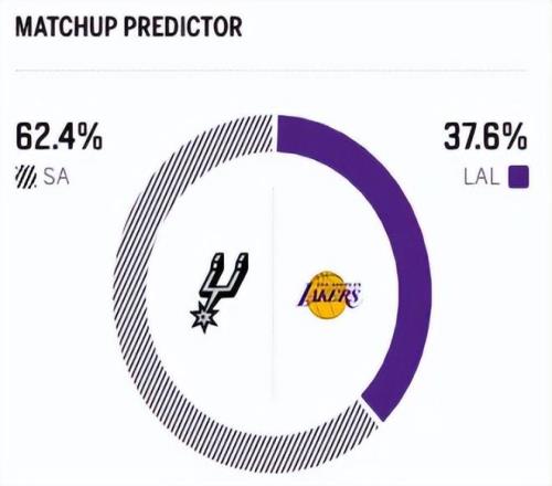 賽前,美媒ESPN對本場比賽進行了勝率預測,湖人隊勝率僅有37.3% ,馬刺勝率則高達62.7% ,差距非常明顯。