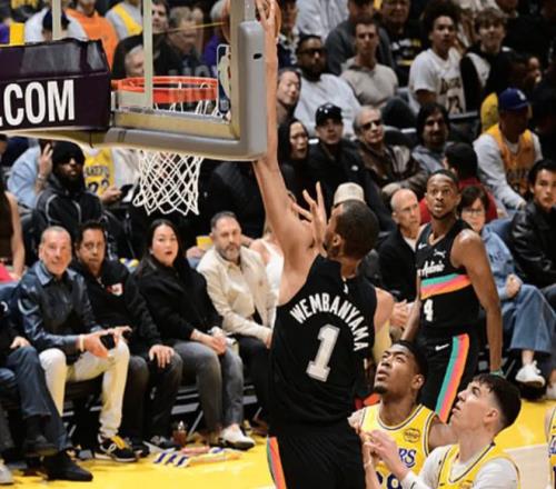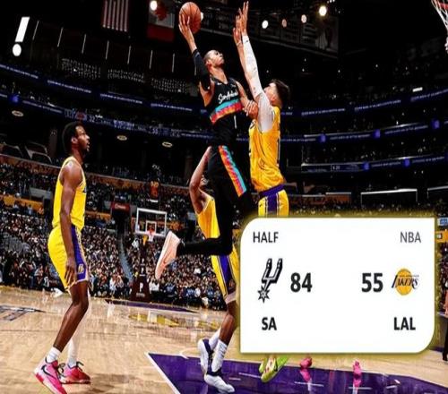 次節回來,哈珀連續反擊空接暴扣得手,馬刺打出6-0領先到23分。拉拉維亞突破上籃命中,拿到湖人全隊最高10分,但剛開局已經身背4犯。文班亞馬補籃得手,馬刺次節轟出15-4已經領先湖人28分。海耶斯轉身勾手命中,文班亞馬中距離跳投再中,目前13中10已經砍下31分,馬刺70-40領先湖人30分。海斯迎著文班亞馬投進本賽季第2記三分,目前5中4拿到9分。卡斯爾殘暴大帽八村壘,落地後摔到後腰,表情痛苦,被替換下場返回更衣室檢查。半場戰罷,馬刺84-55領先湖人29分。