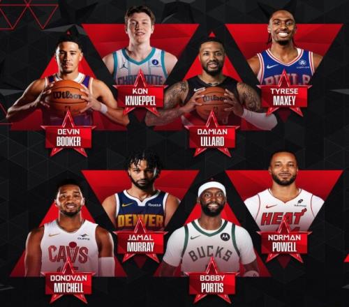 三分大賽部分,此前追求三連冠失敗的利拉德提前複出,再加上布克、米切爾、馬克西、波蒂斯、鮑威爾、穆雷。而最被關注的,應該就是史上最快單賽季破100記三分的克努佩爾了,看看他能否再次突破三分新紀錄。