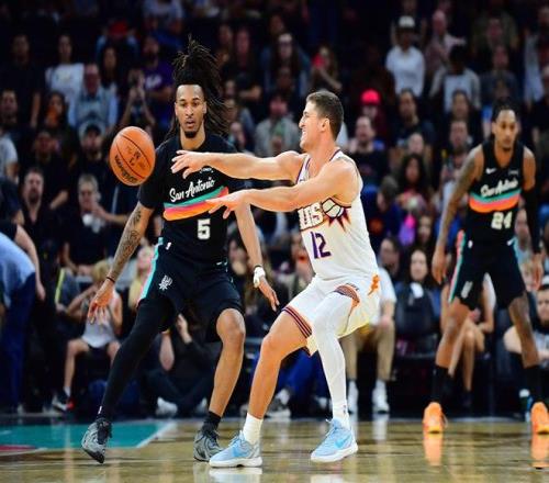 次節比賽,馬刺連續兩節單節得分30+,且限製太陽連續兩節單節不超過25分。馬刺繼續壓製太陽,文班亞馬與科內特接連內線得分,馬刺逐步擴大兩位數領先優勢。布克因為右髖部酸痛不到9分鍾退賽,馬刺單節31-24再贏7分,上半場結束馬刺已經擴大61-49領先太陽。