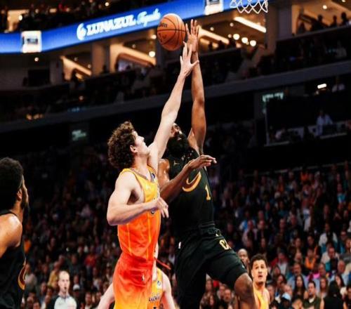 不過第一節後半段,黃蜂突然啞火陷入得分荒,騎士則抓住機會,米切爾連續衝擊籃下製造殺傷,帶領球隊占據主動權。第一節比賽結束,騎士30-20領先黃蜂10分。次節比賽開始,米切爾借助掩護的三分球一發入魂,幫助騎士先下一城,克尼普爾三分接球就投立馬還以顏色,米切爾大步流星衝擊內線又挑落兩分,克尼普爾手腕一抖,飛身補籃穩穩得手,哈登後撤步拉球三分一箭穿心,泰森底角埋伏,三分線外搭弓射箭百步穿楊,瑞籃內線高舉高打,轉身上籃擦板命中,阿倫禁區吃餅立馬還擊一球。第二節黃蜂手感回暖,縮小了一些分差,半場比賽戰罷,騎士59-53領先黃蜂6分。