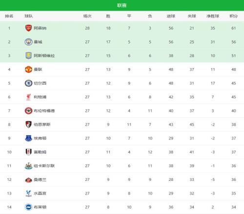 第四,僅落後第3名維拉3分,拿下歐冠席位越來越有戲。