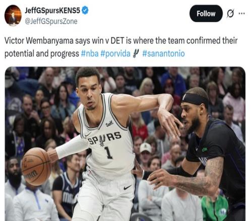 文班則認為本場擊敗聯盟第一活塞是團隊的勝利,每個人都在這場比賽中有所貢獻,同時本場勝利是馬刺證明自身實力和取得進步的重要時刻。