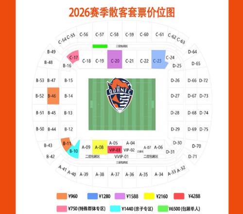 上賽季120元的區域,本賽季細分成了108元、128元兩個檔次,球迷可以根據自己的需求合理選擇。上賽季180元的區域(A6至A9),基本保持不變。VIP區域從360元調整到了388元。