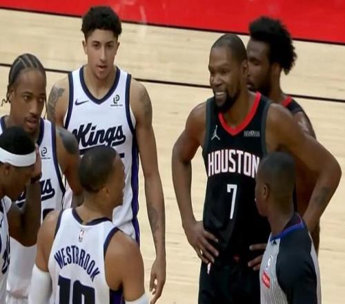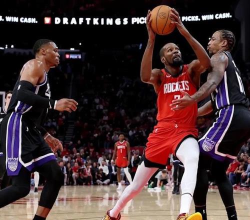 北京時間2月26日,NBA常規賽繼續進行,薩克拉門托國王隊前往客場挑戰休斯頓火箭隊。國王隊傷病滿營,此前剛剛結束隊史最長的16連敗,但這並不會改變球隊俯衝狀元簽的計劃。火箭隊全明星周末過後3戰2勝,球隊在西部第3和西部第5之間搖擺,阿門不幸遭遇股四頭肌傷勢。此役,國王隊首發五虎為威少+德羅讚+穆雷+阿丘瓦+雷諾,火箭隊首發五虎為杜蘭特+申京+阿門+小賈巴裏史密斯+伊森。