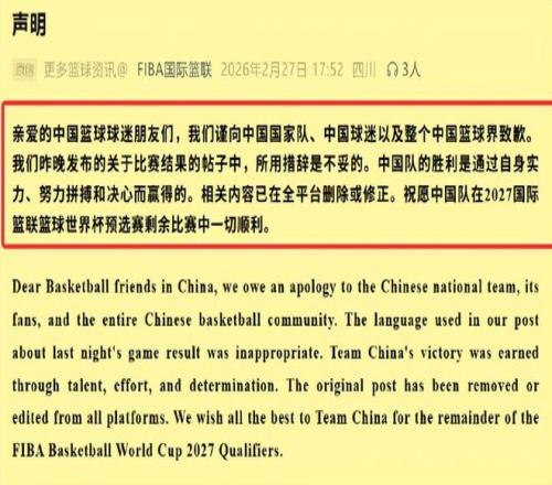 FIBA不再說中國男籃贏得不光彩了,而是改口說對不起!承認中國男籃絕對是憑實力贏得比賽,而不是什麽“偷走了勝利”。