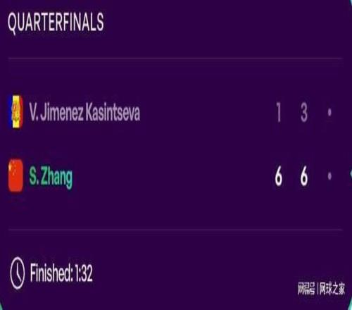 張帥挺進梅裏達500賽四強後,她半決賽的對手已經確定,屆時將迎戰弗雷徹。
