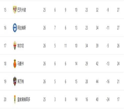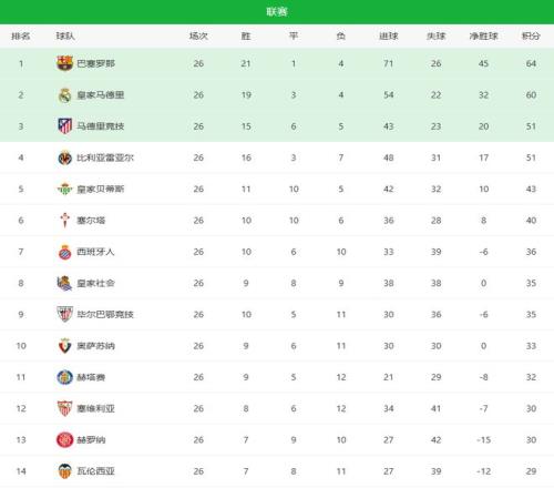 隨著皇馬01爆冷+巴薩笑納!西甲最新積分榜14名差13分馬競掉隊_24直播網