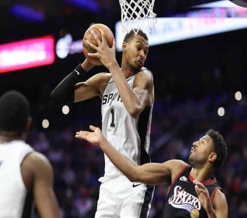 全場34次三分出手僅命中9球,除文班亞馬外,僅有瓦塞爾和卡斯爾得分上雙,球隊整體表現難言理想。而76人上場比賽同樣被凱爾特人終結連勝,33勝27負的戰績位列東部第六!恩比德上一場缺陣,馬克西空砍33分6助攻,埃奇庫姆拿到23分,其餘球員表現平平。德拉蒙德中規中矩貢獻10分12籃板,巴洛有14分8籃板入賬,烏布雷10投僅2中,替補席四人合計僅得14分。目前 76 人陣容深度一般,喬治被禁賽,恩比德打打停停,確實傷害球隊。此役,恩比德繼續缺陣,賽前,美媒ESPN預測本場比賽,馬刺勝率62.9%,76人勝率37.1%。首節比賽開打,首節馬刺依靠團隊進攻逐步壓製殘陣76人,馬刺單節22投11中,命中率達到五成,三分11投3中。文班亞馬雖無運動戰出手,但依靠罰球2中2得到2分,另有3籃板1助攻4蓋帽,防守端威懾明顯;哈珀5投4中砍下11分,福克斯貢獻5分5助攻。76人28投9中,三分11投5中,馬克西7投2中得到8分5籃板2助攻,埃奇庫姆6投1中僅得2分。首節戰罷,馬刺32-25領先76人。