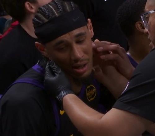 嚇得湖人隊醫暫停的時候馬上給海斯檢查脖子...