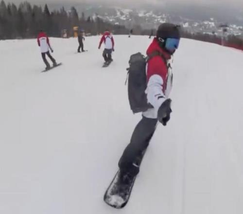 中國殘奧單板滑雪教練員牛天然給《華夏時報》記者發來的滑雪第一視角視頻顯示,每一名運動員都背著物資包,裏麵裝有滑雪的備用物品以及水,補充能量的食物等常用物品,大部分運動員身著紅色的中國體育代表團服裝,在雪道之上,他們如遊魚般靈動自如。