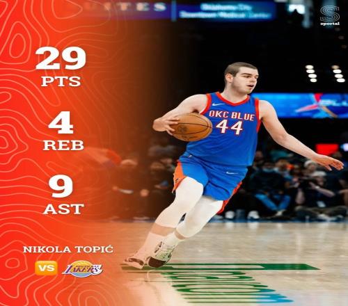 本場比賽中,雖然俄克拉荷馬城藍色輸掉了比賽,但是被雷霆下放到NBA發展聯盟賽場進行鍛煉的後場新星尼科拉-托皮奇(Nikola Topic)的表現令人刮目相看。托皮奇全場出場34分鍾,投籃18中10,三分線外6中2,罰球6中5,得到了全場最高分29分外加4籃板9助攻的數據,還有2次失誤和4次犯規,正負值為-7。托皮奇在進攻端簡直是勢不可擋,他展現出了自己超強的得分能力,他也證明了自己有著豐富的進攻手段,他也是通過各種方式拿下了大量的得分。不僅如此,托皮奇也展現出了一定的傳球能力和組織能力,他在這方麵的表現同樣是值得肯定的。隻是球隊絕大多數球員的表現比較一般,整體實力也有些不如對手,托皮奇即使表現不錯,他也沒有辦法幫助球隊扭轉局麵。