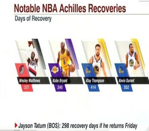 雅虎體育記者Tom Haberstroh今日曬出一份球星跟腱撕裂(斷裂)傷病的恢複數據。