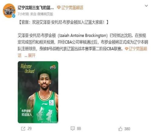 昨天遼寧隊官宣了新外援布羅金頓,此前在3月3日官宣了新外援泰勒-哈維,這兩名小外援的加入將會很大程度上加強遼寧隊的後衛線,幫助球隊進入季後賽並且在季後賽裏走得更遠。本賽季至今遼寧隊更換了多名外援,先後裁掉傑隆-布朗、奧利弗和亨特,新簽這兩名外援後如果不發生傷病或其他較大的變故,這個賽季應該不會更換新的外援了。