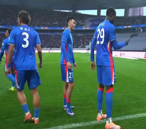 上半場最後時刻,申花一次簡單高效的邊路傳中,馬馬杜搶點破門,3-1領先。連續幾個波次的進攻,大連英博有些難以招架。