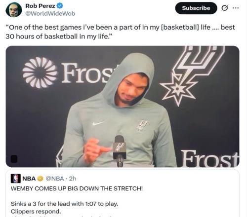 馬刺25分超級大逆轉平紀錄!文班高效轟27+10+4帽賽後喜極而泣,近15戰14勝起飛征服舊將小卡。