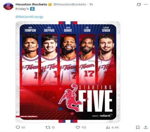 火箭:謝潑德、阿門、杜蘭特、伊森、申京;