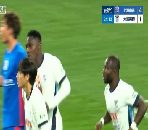 第45+4分鍾,申花不依不饒,禁區內馬馬杜防地高空球冒頂,拉唐一腳推射再下一城,申花3-1領先大連英博!