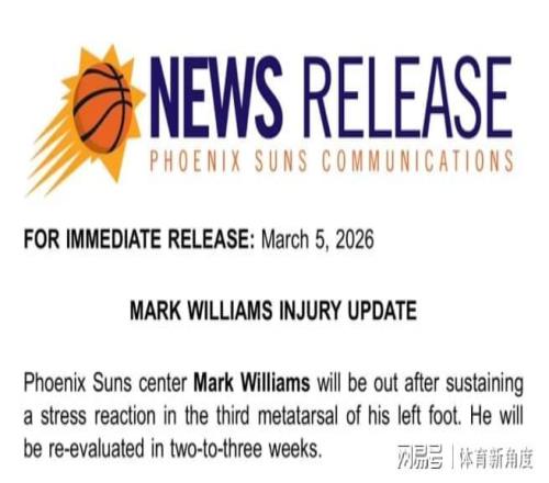太陽隊官方突然扔出一顆“重磅炸彈”:咱們的主力中鋒馬威,左腳第三蹠骨鬧起了“小脾氣”,應力反應來襲,得乖乖休戰2-3周,到時候還得再評估評估能不能上場。