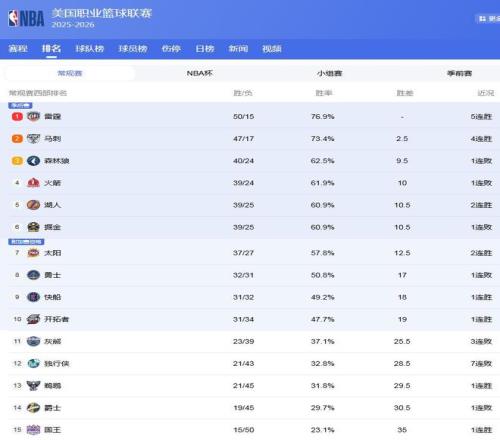 西部最新排名: