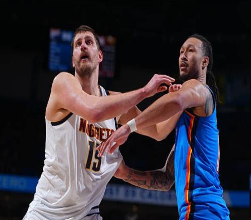 第三節,掘金調整了狀態,球隊僅落後3分進入到末節。盡管掘金在最後兩分鍾一度落後9分,但是他們沒有放棄,連續命中三分球,在最後40秒,掘金落後雷霆3分,隨著約基奇轉身拋投打進,掘金僅落後雷霆1分。