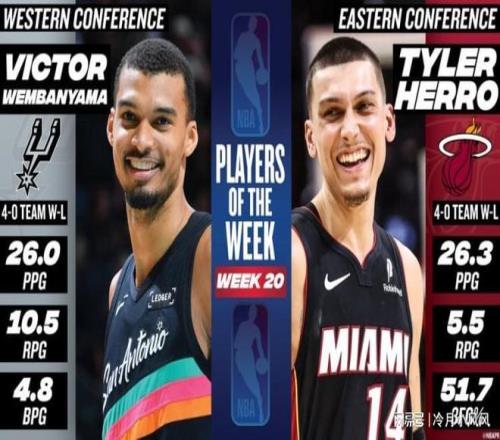 今日,NBA官方公布了第20周東西部周最佳球員名單,結果顯示東部屬於熱火後衛泰勒希羅,西部則由馬刺中鋒文班亞馬當選。上周,希羅場均得到26.3分5.5籃板,三分命中率高達51.7%,幫助熱火取得4勝0負的佳績;文班亞馬場均貢獻26.0分10.5籃板4.8蓋帽,率領馬刺四戰全勝。從個人數據和球隊戰績來看,兩人的當選實至名歸,但也有不少球迷對湖人球星盧卡東契奇的落選感到忿忿不平。